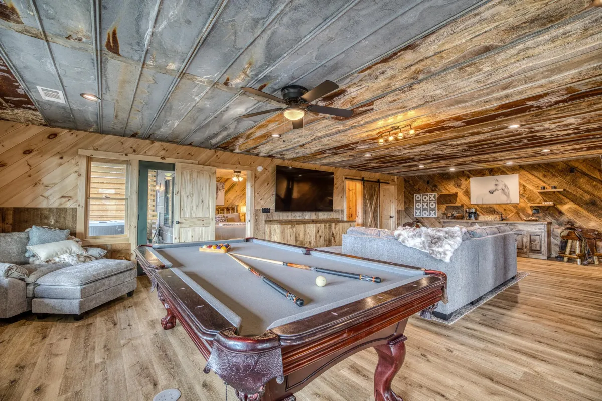 This cozy cabin was designed with connection and play in mind. Challenge your crew to a friendly game on the full-size pool table, or head up to the charming loft where kids can laugh, lounge, and let their imaginations run wild. As the evening winds down, gather around the fire pit under the stars—roasting complementary s’mores, swapping stories, and soaking in the peaceful mountain air.